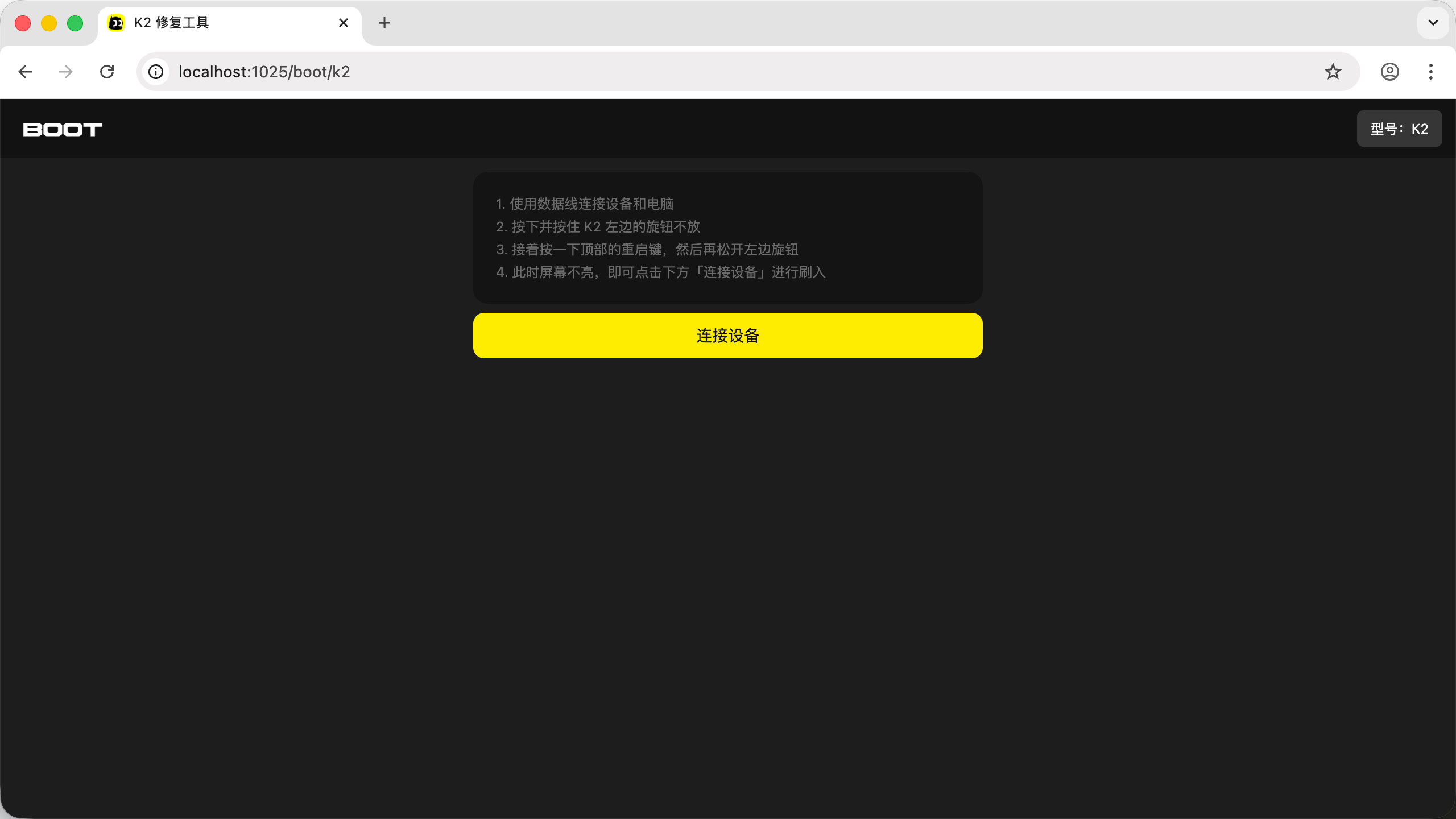 此时屏幕不亮,即可点击下方「连接设备」进行刷入